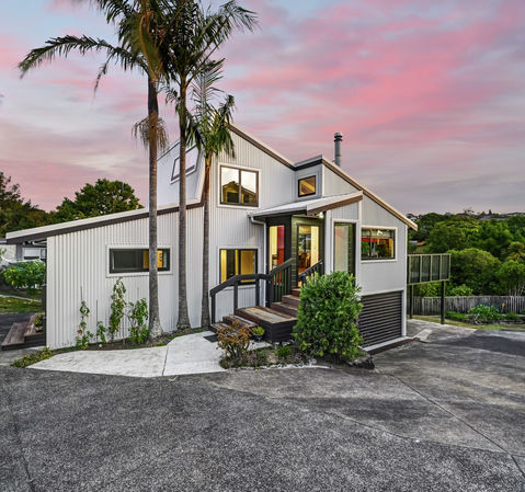 Outside, views over the bush clad valley, an orchard with mature fruit trees, and raised garden beds complete the self-sufficient charm. Located in the sought-after Maclean's College and BBI zones and just minutes from Eastern Beach, this exceptional home offers the perfect balance of inspiration, tranquillity, modern comfort, and easy access to nature.